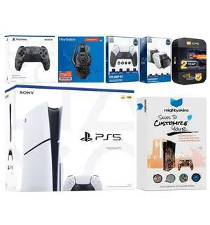 Sony Playstation 5 Slim Disc with Extra Chroma Pearl Controller, Plantronics Headset, Gamer Kit, Charge Dock and MightySkins Decal Voucher + 1 Year CPS Extended Warranty