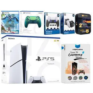 Sony Playstation 5 Slim Disc with Horizon Forbidden West, Extra Chroma Teal Controller, FPS Grip Kit, Charge Dock and MightySkins Decal Voucher + 2 Year CPS Extended Warranty