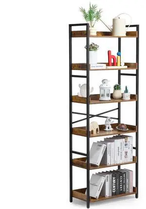 VEVOR Metal Bookshelf Rustic Bookshelf 6-Tier for Living room Bedroom & Office