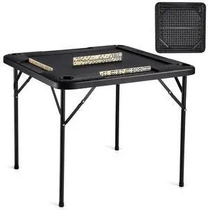 VEVOR Mahjong Table 4 Player Folding Card Table & 4 Cup Holders Chip Trays Black