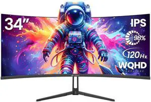 CRUA 34" Curved Gaming Monitor, IPS WQHD(3440x1440P) 120Hz 1900R 21:9 UltraWide PC Display, 130% sRGB, AMD FreeSync, Blue Light Filter, HDMI/DP Ports, Wall Mountable Installs Black