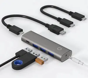 USB C Hub with 1 USB 3.0 Port (Top) & 3 USB 2.0 Ports (Side), 2 USB C (Female) to USB 3.0 (Male) Adapters - 3in1 Multi-Port USB Type C Dock Dongle Compatible for All Type C Devices