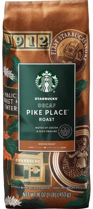 Whole Bean Coffee Decaffeinated Pike Place 1 lb Bag 12540222