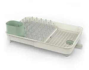 Joseph Joseph Extend Expandable Dish Drainer Rack with Removable Flatware Holder Swivel Draining Spout - Stone/Sage Green