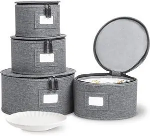 storageLAB China Storage Containers, Hard Shell Case with Felt Dividers for Charger Plates, and Dishes, Ideal for Kitchen Organization, Moving Supplies, and Fine China Storage - 4-Piece Set, Gray