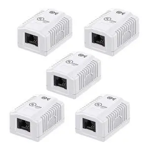 Cable Matters UL Listed Cat6 5-Pack RJ45 Surface Mount Box - 1 Port in White (Cat6 Ethernet Mount Box)