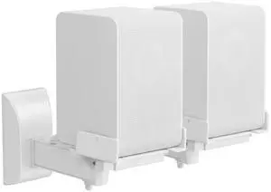 TNP Speaker Wall Mounts - Dual Side Clamping Bookshelf Mounting Bracket for Large Surround Sound Speaker with Adjustable Swivel & Tilt Angle for Home & Studio, up to 55 lbs, 2 Pack, White