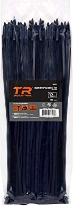 tr industrial multi-purpose uv resistant black cable ties, 12 inches, 100 pack