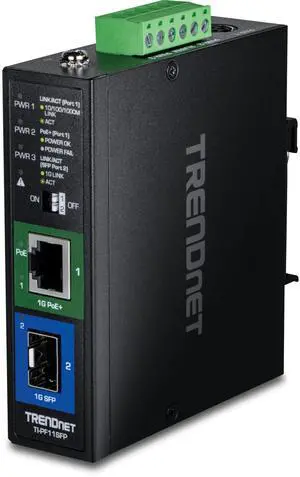 TRENDnet Industrial SFP to Gigabit PoE+ Media Converter, TI-PF11SFP, NDAA + TAA Compliant, IP50 Rated Housing, Up to 30W of Power, Multi or Single Mode Fiber