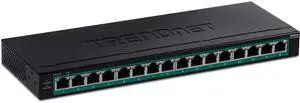 TRENDnet 16-Port Gigabit PoE+ Switch, TPE-TG160H, 123W PoE Power Budget, 32 Gbps Switching Capacity, Desktop Switch, Ethernet Network Switch, Metal, 1U 10" Rack Mountable, Lifetime Protection