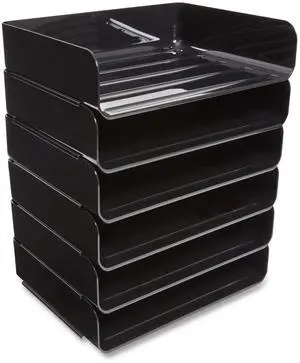 TruRed Side-Load Stackable Plastic Document Tray Letter Black 6/Pack TR55329