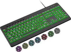 EDJO Large Print Backlit Wired Keyboard, Light Up USB Keyboard with 7-Colors Backlight, Oversize Letters Keys Full Size Computer Keyboard Compatible for Windows, Laptop, PC