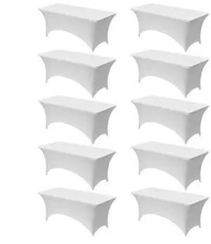 VEVOR 10 Pack Table Cloth for 6FT Rectangular Fitted Events, Wrinkle-Resistant Stretch White Table Covers, Washable Spandex Tablecloth Protector, for Party, Wedding, Cocktail, Banquet, Festival