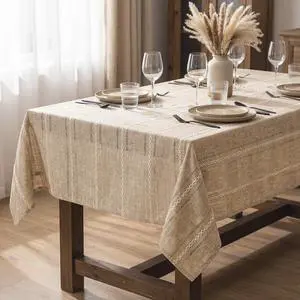 Faux Linen Tablecloth Rectangle 60 x 84 Inch - Fabric Neutral Table Cloth for 6 Foot Tables, Nature Faux Burlap Kitchen Table Cover for Dining, Party, Farmhouse, Outdoor Picnic, Camping