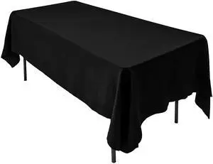60 x 102-Inch Rectangular Polyester Tablecloth - Made in USA - Wrinkle-Resistant, Flame Retardant, Durable Party Table Cover, Banquet Tablecloth, Wedding Table Cover - Black