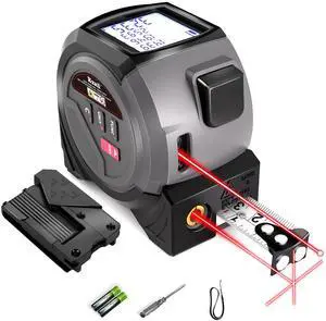 Laser Tape Measure, 164ft Class II Laser Distance Meter (0.49mW Red Laser) and 16ft Manual Tape Measure