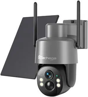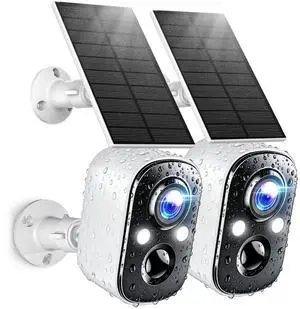 Techage Solar Security Cameras Wireless Outdoor, 2K Battery Powered WiFi Cameras for Home Security with AI Motion Detection, Color Night Vision, 2-Way Talk, IP66 Waterproof, Cloud/SD Storage 2 Pack