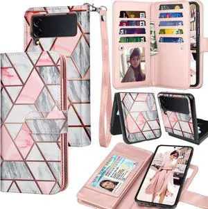 Galaxy Z Flip 5 Case, 2023 Galaxy Z Flip5 Wallet Case, Tekcoo Luxury PU Leather Credit Card Slots Holder Carrying Folio Cover [Detachable Magnetic Case] Kickstand for Samsung Z Flip5 5G [Marble]