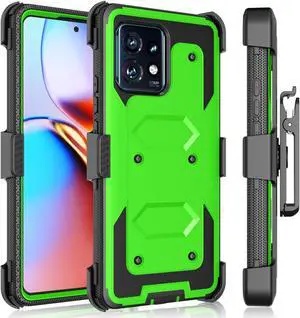 Tekcoo Holster Case For Motorola Edge+ 2023 | Moto Edge Plus 5G UW 2023 | Edge 40 Pro X40 | XT2301 [Tshell] Shock Absorbing [Kickstand Locking Belt Clip] Carrying Secure Swivel Full Body Cover - Green
