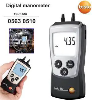 Testo 510 Digital Manometer I Dual-Port Differential Pressure Meter for air C...