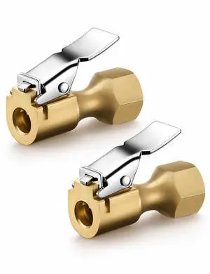 KEHIPI 2 Pack Air Chuck, Heavy Duty Closed Flow Lock On Tire Chuck with Clip for Inflator Gauge Compressor Accessories, Yellow