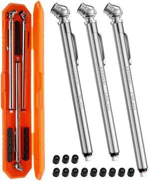 KEHIPI Pencil Tire Pressure Gauge (10-75PSI,100PSI,120PSI), Valve Caps with Case, Stainless Steel Body, and Metal Made Nozzle 3 Measurements for Cars, Bikes, Vehicles
