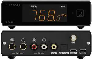 Topping E50 II Desktop DAC Preamp, USB/Optic/Coaxial/Bluetooth Inputs, AK4497S Balanced Digital to Analog Audio Converter, 10-Band PEQ, Balanced TRS/RCA Output, HiFi Decoder with APP Control, Black
