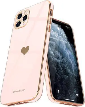 Teageo for iPhone 11 Pro Max Case for Girl Women Cute Love-Heart Luxury Bling Plating Soft Back Cover Raised Full Camera Protection Silicone Shockproof Phone Case for iPhone 11 Pro Max, Light Pink