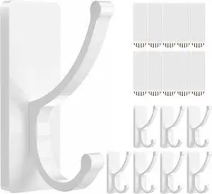 pickpiff Adhesive Wall Hooks with Strip - No Residue, Easy to Remove, Strong Heavy Duty Sticky Towel Hook, 8 Pack White