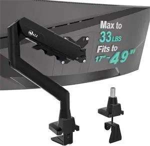 WALI Heavy Duty Single Monitor Arm for 17-49 Inch Flat Curved Ultrawide Screens, up to 33 Lbs, Adjustable Gas Spring Single Monitor Desk Mount for Home Office Gaming, VESA 75/100mm (GSM001XLN), Black