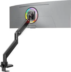 ARES WING Ultrawide Monitor Arm for 17 to 49 Inch Heavy Duty Curved Screen, Holds 44 Lbs, Adjustable Gas Spring Monitor Arm Desk Mount with C Clamp, Grommet Base, 75/100 Vesa Mount, Black