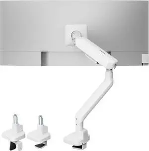 monTEK Single Monitor Arm, Mechanical Spring Monitor Arm for 17-40" Ultrawide Screens, Adjustable Monitors Desk Mount Holds up to 24.2 lbs with C Clamp/Grommet Desk Mount, VESA 75/100mm, MA1011WH