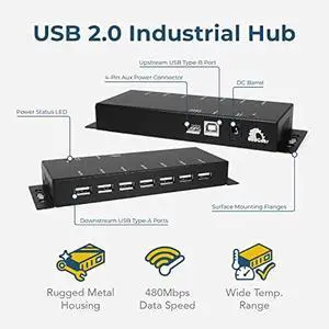 Coolgear Slim 7 Port USB 2.0 Hub w/Power Adapter - 480Mbps Data, LEDs, Surface and Wall Mount