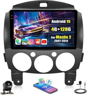 [4G+128G] Car Radio for Mazda 2 2007-2014 with Wireless CarPlay Android Auto,9" Touchscreen Android 15 Mazda 2 Car Stereo with Mirror Link WiFi GPS Navigation,Bluetooth,FM/RDS SWC EQ+Backup Camera