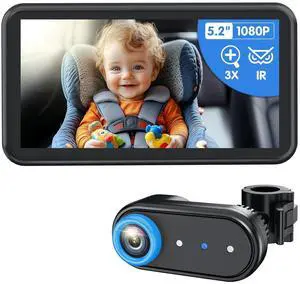 BM2A Baby Car Camera 3X Zoom to See Baby Clearly, 5.2" 1080P Display & Auto IR Night Vision, Rear-Facing View Monitor, Easy Install for Parents & Pet Owners