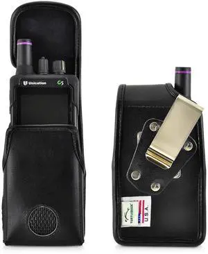 Turtleback Case Made for Unication G4 G5 Voice Pager Fire Radio Phone Black Leather Fitted Case with Heavy Duty Metal Ratcheting Removable Belt Clip