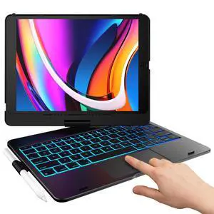 typecase Touch for iPad 9th Generation Case with Keyboard (10.2", 2021),Multi-touch Trackpad,10 Color Backlight, 360 Rotatable, Thin & Light for 8th Gen (2020),7th Gen (2019), Air 3,Pro 10.5 (Black).