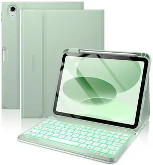 typecase Folio Keyboard Case for iPad 10th Gen 10.9 inch (2022) and iPad 11th (A16, 2025), Magnetic Wireless Detachable Keyboard, 7-Color Backlight, Thin & Light, Pencil Holder Matcha Green