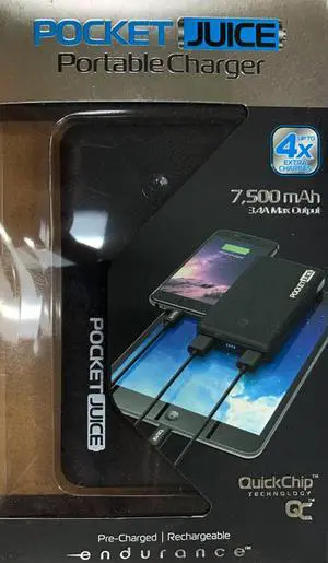 Tzumi Pocket Juice 7500 mAh Portable charger slim Black
