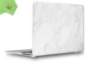 UESWILL Marble Pattern Smooth Hard Shell Case Cover Compatible with MacBook Air 11 inch (A1465/ A1370) + Microfibre Cleaning Cloth, (White)