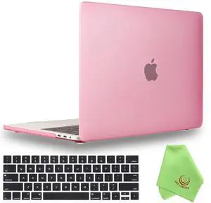 UESWILL Case Compatible with 2019 2018 2017 2016 Release MacBook Pro 15 inch with Touch Bar Model A1990 A1707, Hard Shell Case with Black Keyboard Cover, Pink