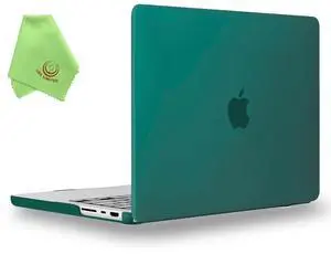 UESWILL Compatible with 2024 2023 2022 2021 Release MacBook Pro 16 inch Case with M4 M3 M2 M1 Pro Max chip & Touch ID, Smooth Matte Hard Shell Cover + Microfiber Cloth, Peacock Green