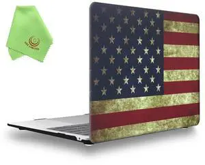 UESWILL Hard Case Cover Compatible with 2022 2021 2020 2019 2018 MacBook Air 13 inch M1 with Retina Display & Touch ID Model M1 A2337 A2179 A1932 + Microfiber Cloth, US Flag