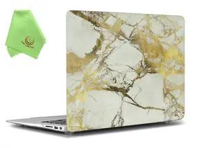 UESWILL Marble Pattern Smooth Hard Shell Case Cover Compatible with MacBook Air 11 inch (A1465/ A1370) + Microfibre Cleaning Cloth, (White/Gold)