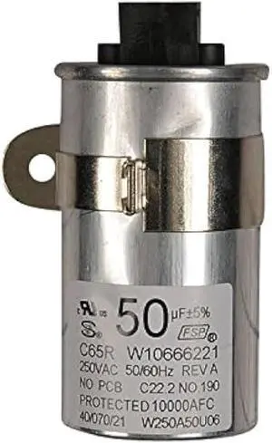 Whirlpool W10278117 Washer Motor Capacitor 50UF 250VAC 2/,250 Tabs