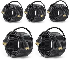 Long HDMI Cable 25FT 5 Pack, 4K HDMI to HDMI Cable 25 Foot in-Wall CL3 Rated High Speed HDMI 2.0 Cord(4K@60Hz, 2K 1440P, 3D, HDCP2.2, ARC, Ethernet) Compatible for Monitor, Projector, HDTV, Laptop, PC
