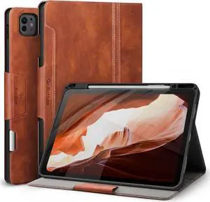 Antbox for iPad Pro 13 Inch Case M4(2024), Built-in Pencil Holder, Fully Supports Pencil Pro and Pencil (USB-C), Auto Sleep/Wake Function PU Leather iPad Pro 13 Case (Brown)