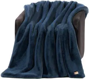 UGG Euphoria Faux Fur Throw Blanket, Soft Warm Throw Blankets for Couch or Bed, Luxury Bedroom Decor, Giftable Fuzzy Blankets, Machine Washable, 50-inch x 70-inch, Indigo Blue