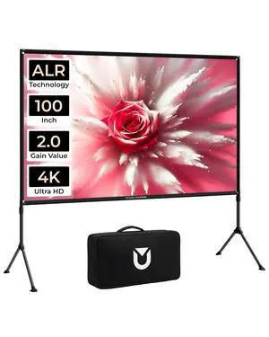 ULTIMEA Outdoor Projector Screen with Stand, 100 inch Anti-Glare Portable Projector Screen, Foldable Indoor Projection Screens 16:9 4K Full HD Movie Screen with Carry Bag for Home Theater