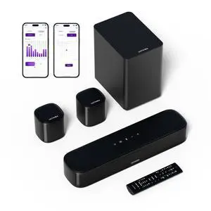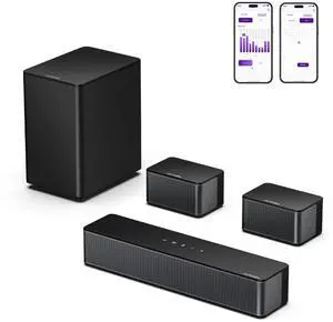 ULTIMEA 5.1ch Sound Bar with Subwoofer, Home Theater Virtual Surround Sound System for TV, Soundbar with App Control, 2 Surround Speakers, Opt/AUX, Peak Power 250W, Aura A30